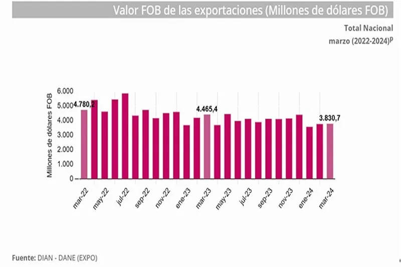 De acuerdo con la información de exportaciones procesada por el DANE y la DIAN, en marzo de 2024…