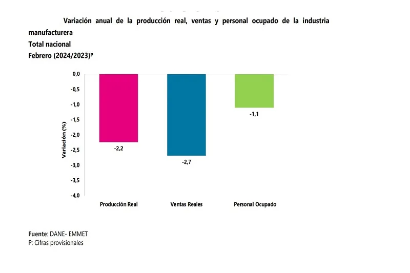 En febrero, la producción real de la industria manufacturera presentó una variación de -2,2%, las ventas reales de…