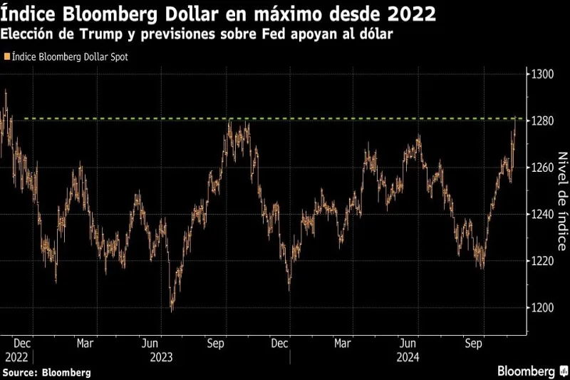 (Bloomberg) — El repunte del dólar estadounidense cobra fuerza una semana después de la victoria presidencial de Donald…