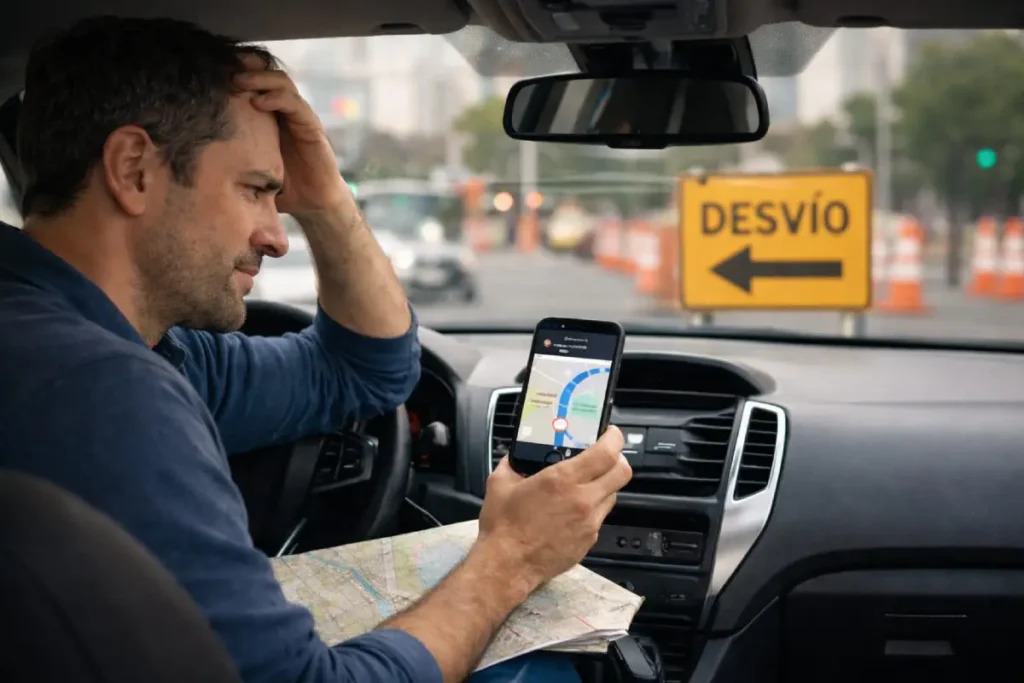 Se bloquea cuando aparece un cambio o desvío pequeño. Una obra, un cierre, un trancón o una entrada distinta bastan para desorientarlo por completo.